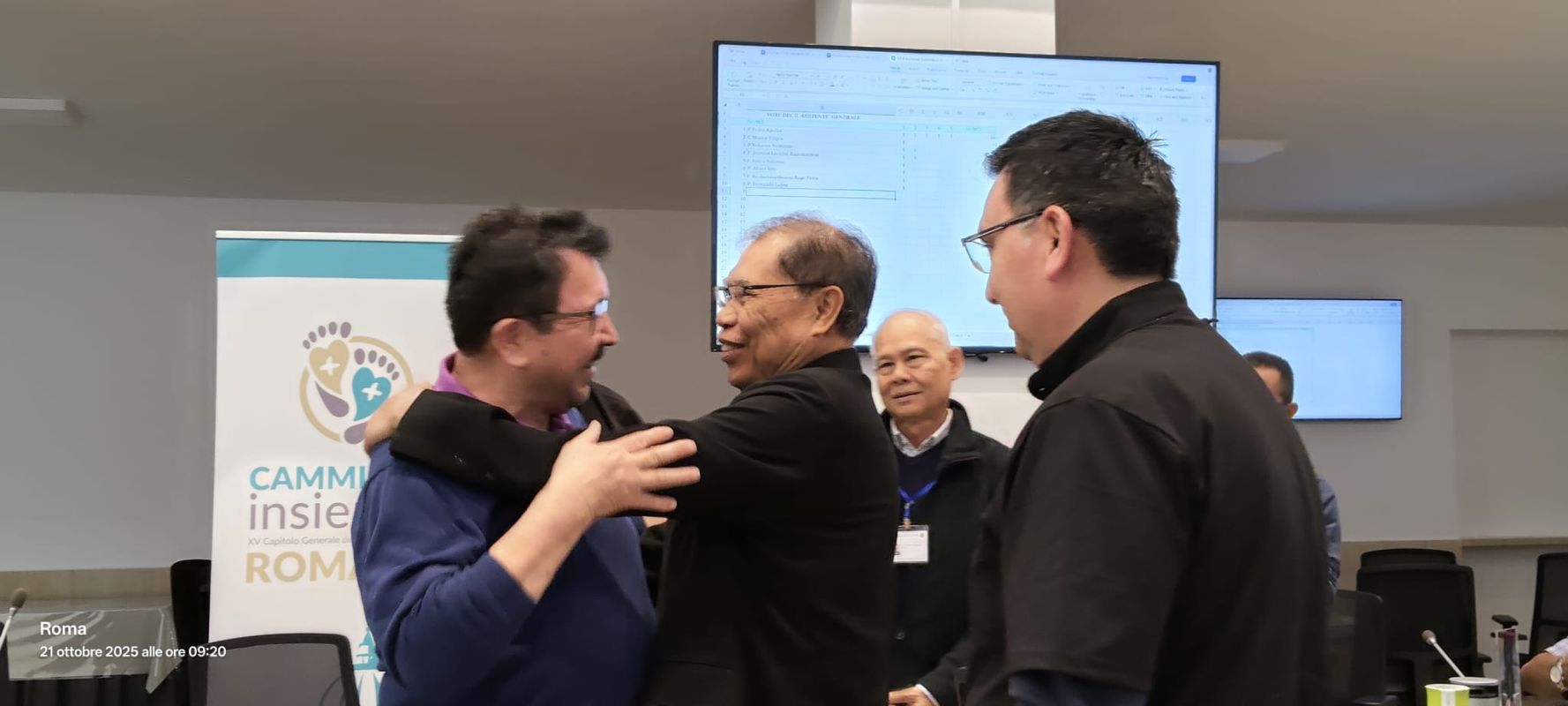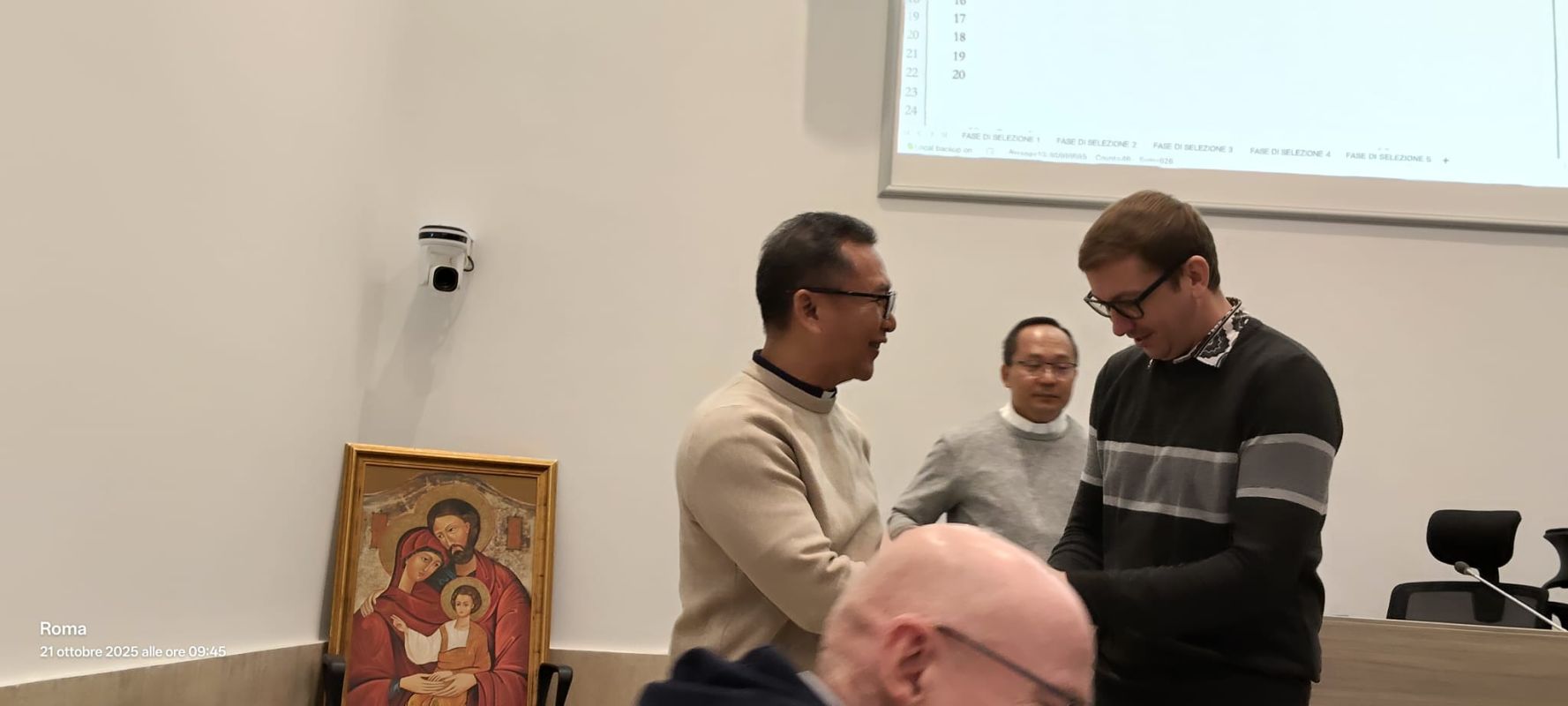 P. David, a causa della situazione politica in Madagascar ha ricevuto il visto solo nella settimana scorsa, così non è venuto al Capitolo Generale (anche altri due delegati di Madagascar non sono potuti venire). In questo caso il Superiore Generale P. Agustinus Purnama ha chiamato P. David per chiedergli se accetta la elezione. Dopo un po' di tempo per la riflessione P. David ha risposto di sì.