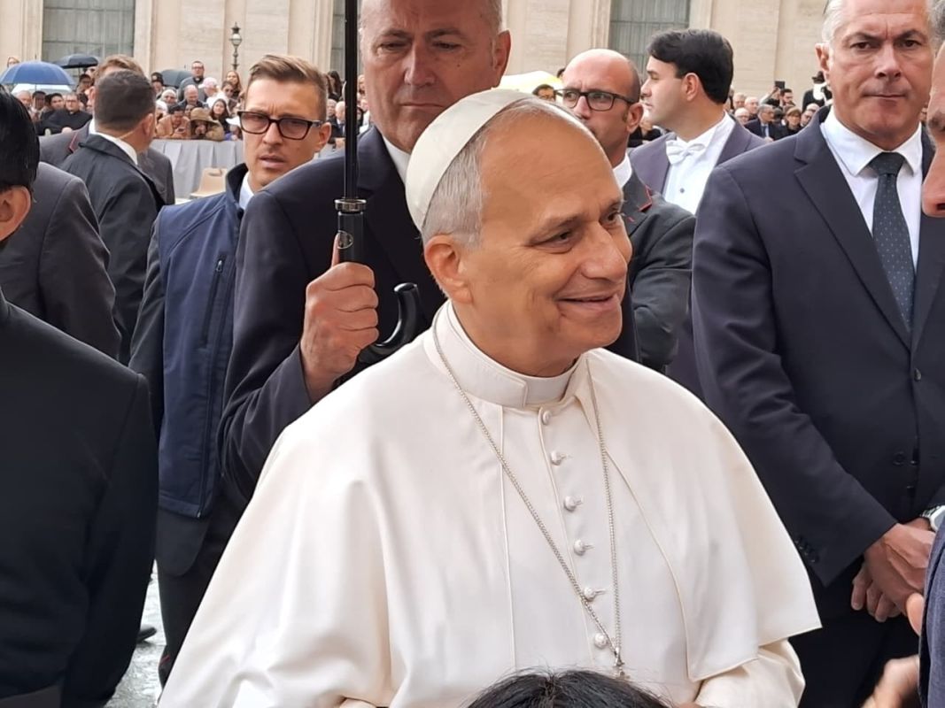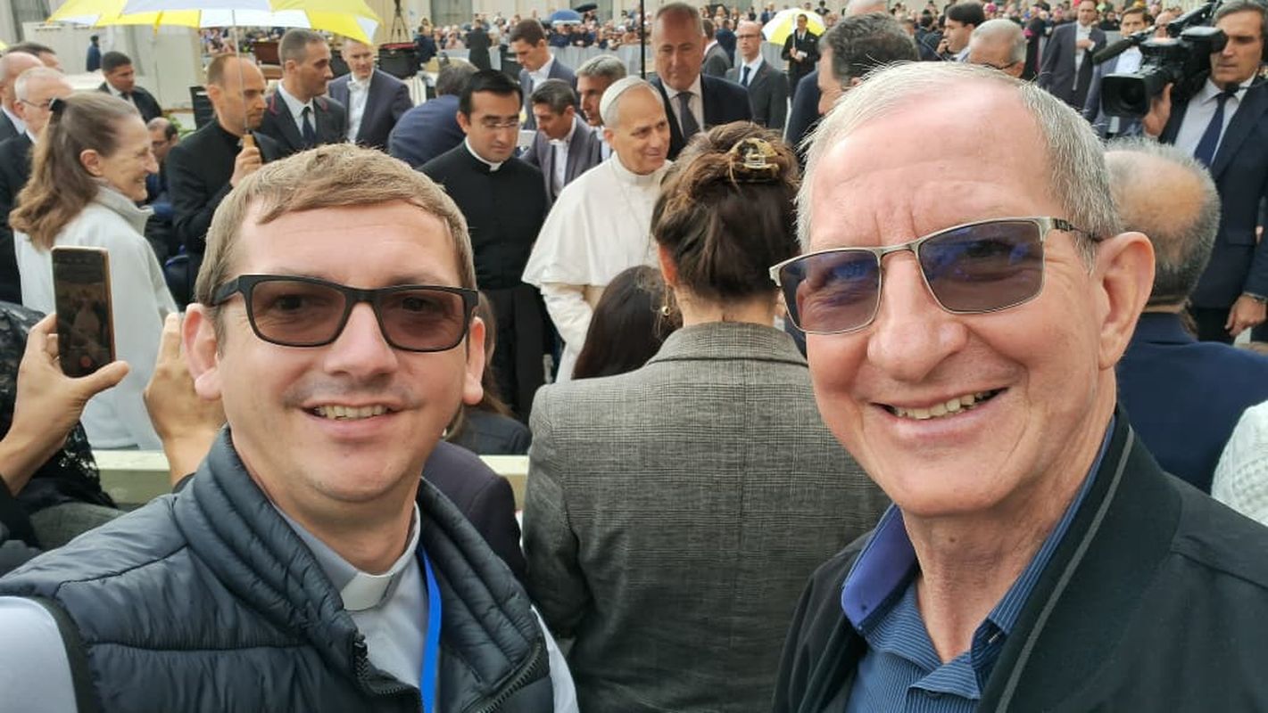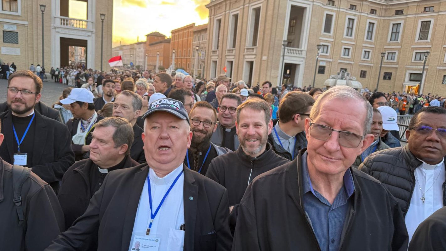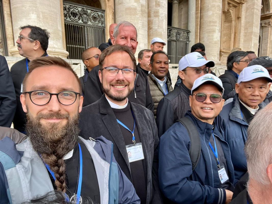Oggi era la giornata per l’udienza con il Santo Padre Leone XIV. Dopo la prima collazione alle ore 07.00 siamo partiti con pullman al Vaticano. La fila già era lunga ma scorreva bene. Dopo il controllo di sicurezza siamo andati al lato destro accanto al podio della Sua Santità. Verso le 10.00 il Santo Padre è arrivato sulla piazza con il papa mobile per un giro a salutare i fedeli, dopodiché il Papa ha iniziato l’udienza con il segno della croce seguito dal suo discorso sulla risurrezione di Cristo come sorgente della nostra gioia e speranza che dirige verso la vita eterna. Dopo la benedizione, la Sua Santità ha salutato i cardinali, i vescovi e i fedeli attorno al podio. Noi anche, i capitolari, abbiamo avuto un’occasione di salutarlo e abbiamo fatto la foto insieme davanti alla Basica di San Pietro. Nonostante la pioggia siamo rimasti lì fino alla fine. Abbiamo ricevuto un regalo dal Santo Padre, i rosari per i capitolari.