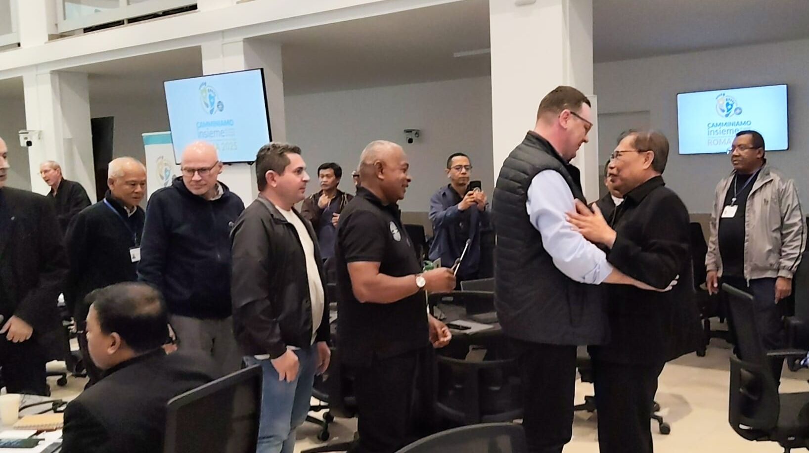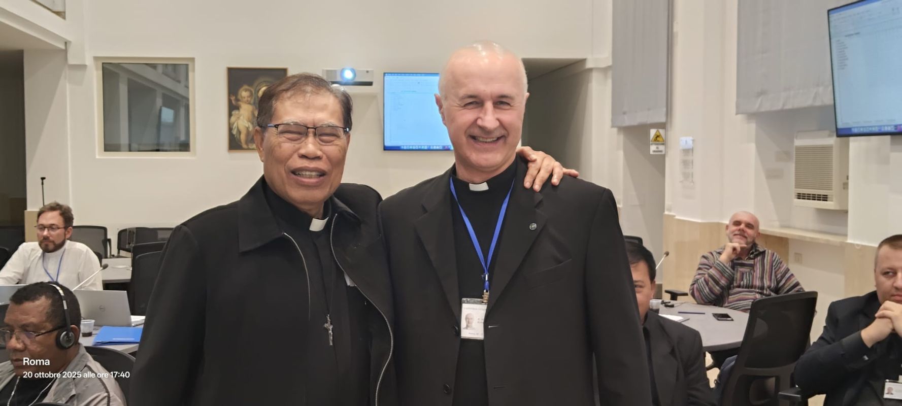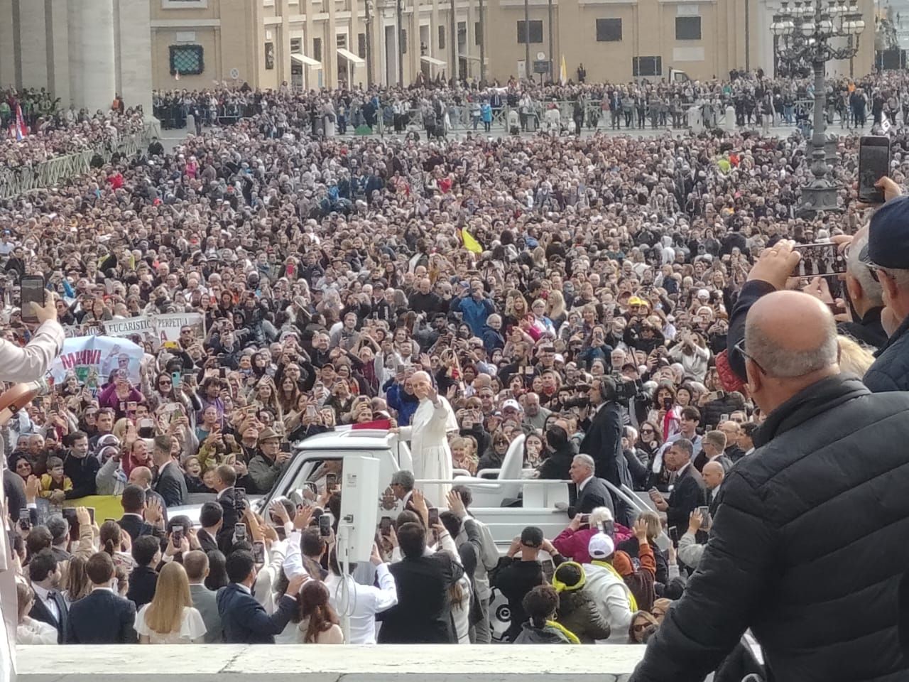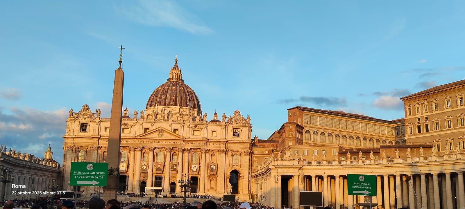 Oggi era la giornata per l’udienza con il Santo Padre Leone XIV. Dopo la prima collazione alle ore 07.00 siamo partiti con pullman al Vaticano. La fila già era lunga ma scorreva bene. Dopo il controllo di sicurezza siamo andati al lato destro accanto al podio della Sua Santità. Verso le 10.00 il Santo Padre è arrivato sulla piazza con il papa mobile per un giro a salutare i fedeli, dopodiché il Papa ha iniziato l’udienza con il segno della croce seguito dal suo discorso sulla risurrezione di Cristo come sorgente della nostra gioia e speranza che dirige verso la vita eterna. Dopo la benedizione, la Sua Santità ha salutato i cardinali, i vescovi e i fedeli attorno al podio. Noi anche, i capitolari, abbiamo avuto un’occasione di salutarlo e abbiamo fatto la foto insieme davanti alla Basica di San Pietro. Nonostante la pioggia siamo rimasti lì fino alla fine. Abbiamo ricevuto un regalo dal Santo Padre, i rosari per i capitolari.