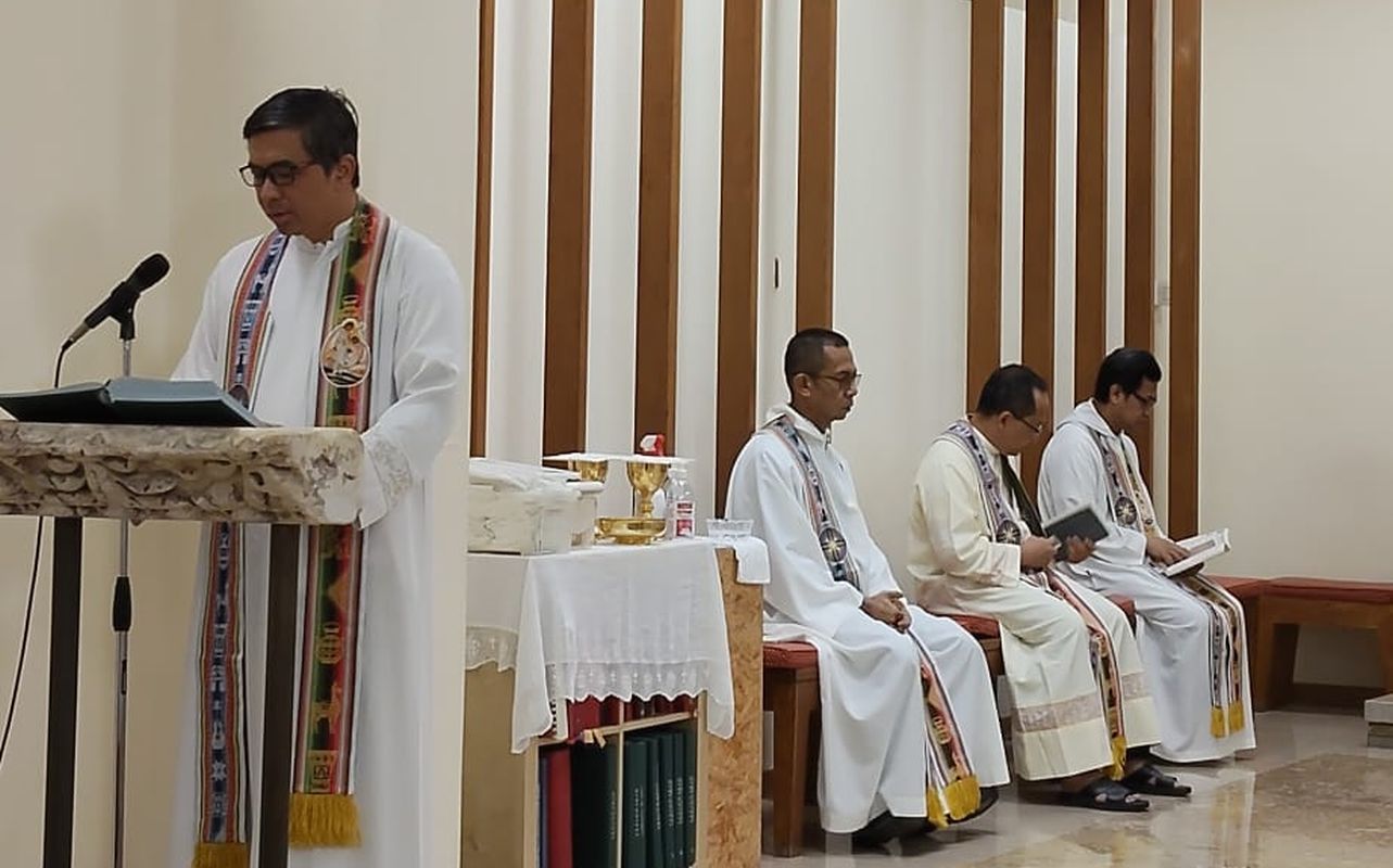 Iniziato come di solito, con la Santa Messa alle ore 7:00, presieduta questa volta dalla Provincia di Giava, con a capo della celebrazione P. Yohanes Berchmans Prasetyantha.
