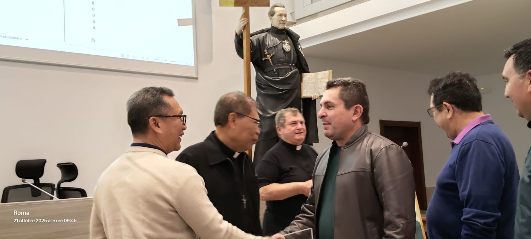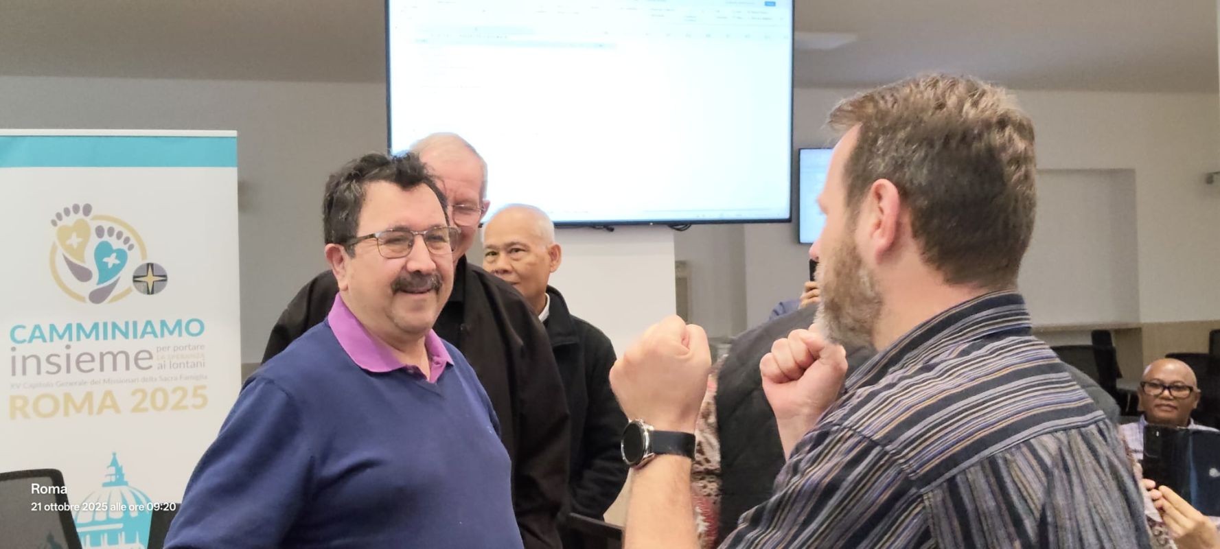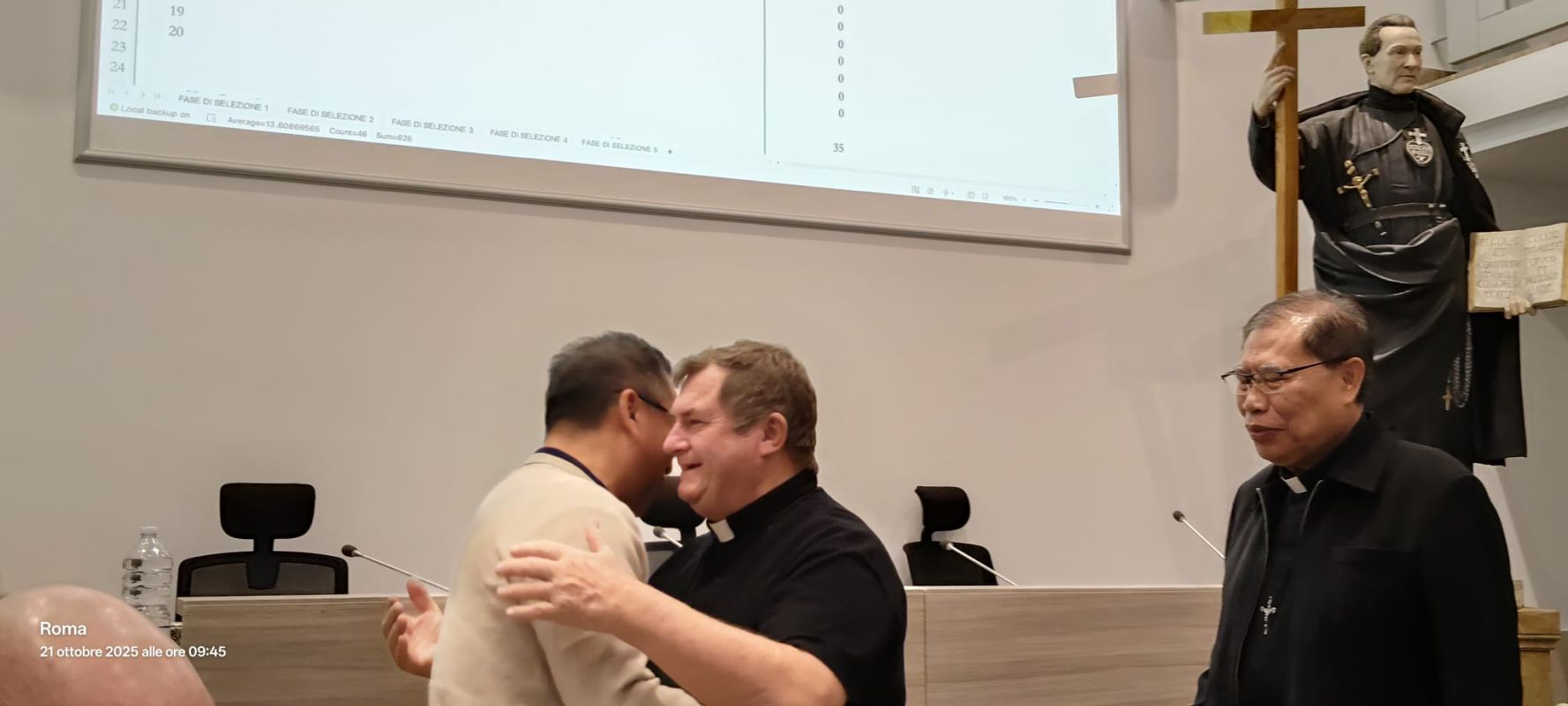 P. David, a causa della situazione politica in Madagascar ha ricevuto il visto solo nella settimana scorsa, così non è venuto al Capitolo Generale (anche altri due delegati di Madagascar non sono potuti venire). In questo caso il Superiore Generale P. Agustinus Purnama ha chiamato P. David per chiedergli se accetta la elezione. Dopo un po' di tempo per la riflessione P. David ha risposto di sì.