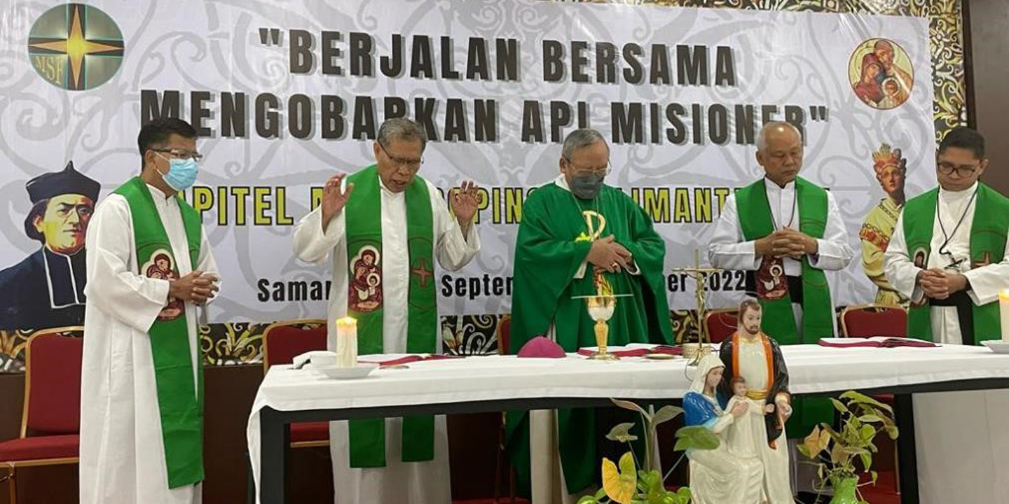 Il Capitolo si è concluso mercoledì 05/10/2022 con la celebrazione della Santa Messa presieduta dal Mons. Yustinus Harjosusanto MSF, Arcivescovo di Samarinda e, nella concelebra più stretta, il Superiore Generale P. Agustinus Purnama MSF, l’Assistente Generale P. Yacobus Lingai MSF, il Superiore Provinciale di Kalimantan P. Agustinus Doni Tupen MSF e il Superiore Provinciale di Java P. Simon Petrus Sumargo MSF.